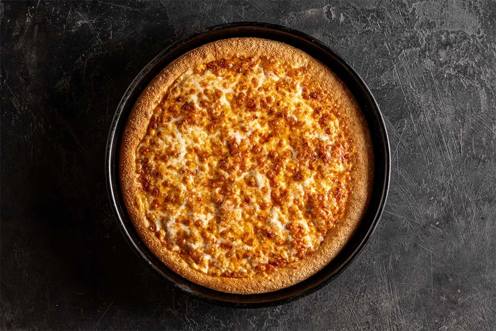 פיצה מבצק עבה עם גבינה טבעונית של משו משו. ניתן להוסיף תוספות בתשלום